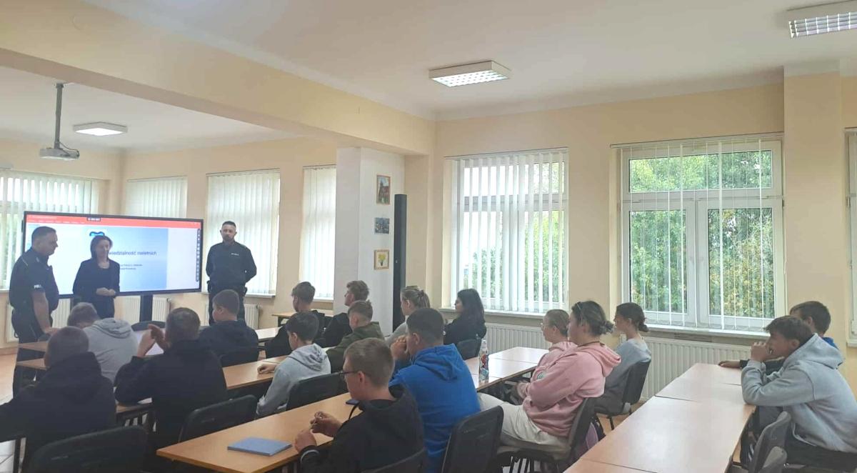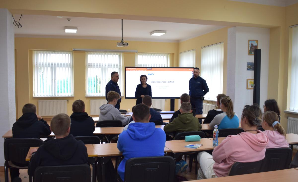 W ramach działań profilaktyczno-edukacyjnych w dniu 23.09.2025 roku w Szczawnicy-Jabłonce zorganizowano spotkanie z przedstawicielami policji z Jabłonki. Tematem dzisiejszego spotkania była odpowiedzialność karna dla nieletnich. Na podstawie prezentacji dzielnicowy omówił kto to jest osoba nieletnia oraz jakie ma prawa i obowiązki. Policjanci wytłumaczyli co oznacza określenie czyn karalny, omawiając jednocześnie kilka artykułów kodeksu karnego, wykroczeń czy ustawy o prawie ruchu drogowym. Młodzież dowiedziała się, jak klasyfikowane są różne działania naruszające prawa i jaka grozi za nie kara. Dowiedzieli się także, co to jest demoralizacja, przedstawiając jednocześnie jakie środki wychowawcze i poprawcze mogą być zastosowane wobec osoby nieletniej. Spotkanie z młodzieżą miało charakter debaty, młodzież chętnie zadawała pytania w kwestiach dla nich niejasnych. Dzięki luźnej dyskusji mieli możliwość wypowiedzenia się w ważnych dla nich sprawach i uzyskania odpowiedzi na niejasne dla nich zagadnienia. Mamy nadzieję, że uczestnictwo w tego typu zajęciach przyczyni się do wzrostu świadomości i odpowiedzialności młodzieży za swoje zachowanie.