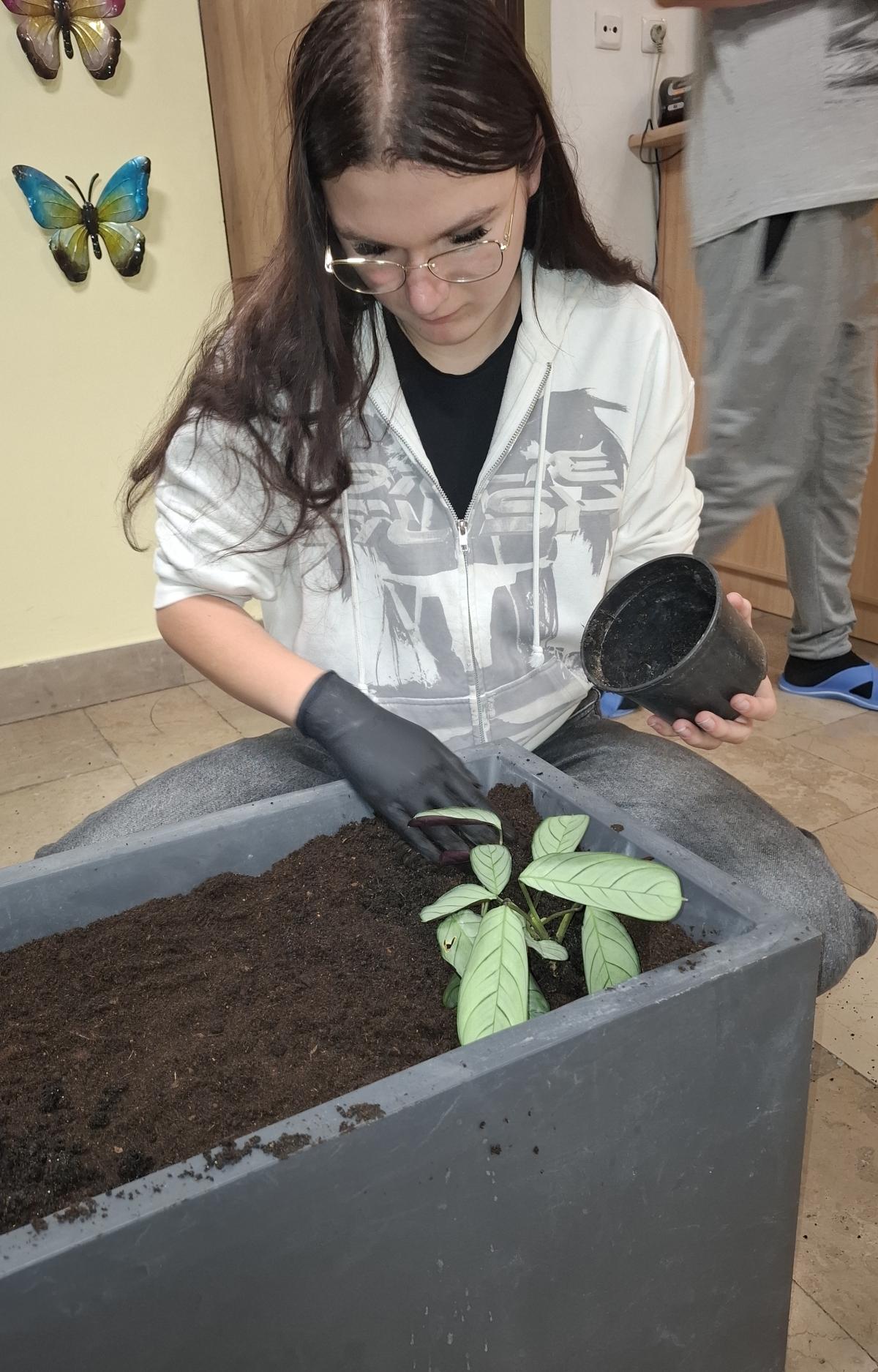 Pod opieką wychowawcy wychowankowie przygotowali doniczki, dobrali odpowiednie gatunki roślin i samodzielnie przesadzali kwiaty. Zielone rośliny w pomieszczeniach sprawiają, że czujemy się bardziej zrelaksowani, a wnętrze staje się przytulniejsze. To także świetny sposób, by nauczyć się odpowiedzialności i systematyczności, ponieważ rośliny wymagają regularnej pielęgnacji .