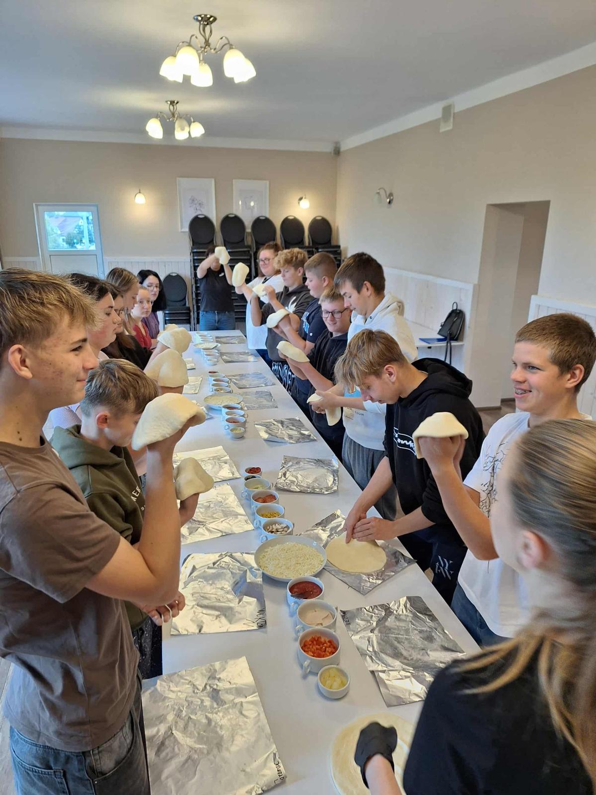 W Centrum Kształcenia i Wychowania OHP w Szczawnicy-Jabłonce odbyły się wyjątkowe warsztaty kulinarne pod hasłem „Pizza Progres”. Inicjatorem wydarzenia było Młodzieżowe Centrum Kariery, które postawiło na kreatywne połączenie nauki, pasji i dobrej zabawy. Młodzież miała okazję samodzielnie przygotować pizzę – od wyrabiania ciasta, aż po komponowanie ulubionych składników. Zajęcia nie tylko rozwijały umiejętności kulinarne, ale też uczyły pracy zespołowej i planowania. Uczestnicy poznali ciekawostki na temat kuchni włoskiej oraz zasady zdrowego odżywiania. Warsztaty przebiegały w fantastycznej atmosferze – pełnej śmiechu, współpracy i zaangażowania. Efektem wspólnej pracy były przepyszne pizze, które smakowały wszystkim uczestnikom. Dla wielu z nich był to pierwszy kontakt z wypiekiem pizzy od podstaw, co dostarczyło im dużo satysfakcji. Młodzież wykazała się dużą kreatywnością i zaangażowaniem. Organizatorzy podkreślili, że takie inicjatywy świetnie integrują grupę i rozwijają praktyczne kompetencje zawodowe. Dziękujemy MCK za pomysł i realizację, a naszym wychowankom za kulinarną pasję i serce włożone w każdy etap przygotowań. Takie wydarzenia pokazują, że nauka przez działanie może być nie tylko efektywna, ale też niezwykle smaczna!