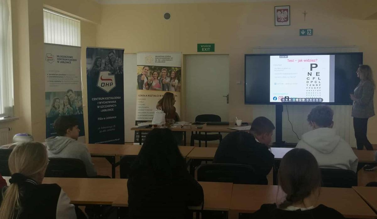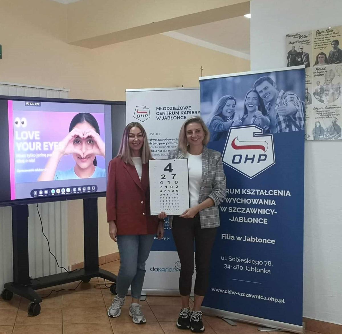 Podczas wizyty wychowankowie CKiW OHP w Szczawnicy - Jabłonce mieli możliwość uzyskania indywidualnych porad dotyczących profilaktyki i higieny narządu wzroku. Panie refrakcjonistki wyjaśniły, jak rozpoznać u siebie pierwsze objawy pogorszenia widzenia, przedstawiły najczęściej występujące wady wzroku, takie jak krótkowzroczność, nadwzroczność i astygmatyzm, a także opowiedziały, jak objawiają się one w codziennym funkcjonowaniu. Uczestnicy dowiedzieli się, jak prawidłowo dbać o oczy podczas nauki i pracy przy komputerze oraz jak ważne są cykliczne badania kontrolne.