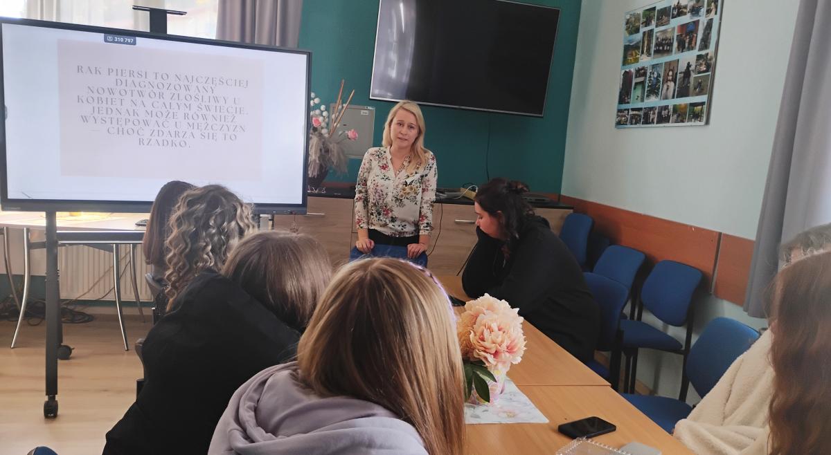 W CKiW OHP w Szczawnicy-Jabłonce odbyły się zajęcia z położną dotyczące profilaktyki raka piersi. Miały one na celu edukację uczestniczek w zakresie dbania o zdrowie piersi oraz wczesnego wykrywania zmian nowotworowych. Podczas zajęć położna omówiła znaczenie regularnego samobadania piersi, zaprezentowała technikę jego wykonania i zwróciła uwagę na objawy, które mogą wskazywać na raka piersi. Uczestniczki dowiedziały się także o roli badań profilaktycznych, takich jak mammografia i USG, oraz o wpływie zdrowego stylu życia na zapobieganie nowotworom. Zajęcia zakończyły się sesją pytań i odpowiedzi, gdzie położna rozwiała wątpliwości i udzieliła indywidualnych porad.