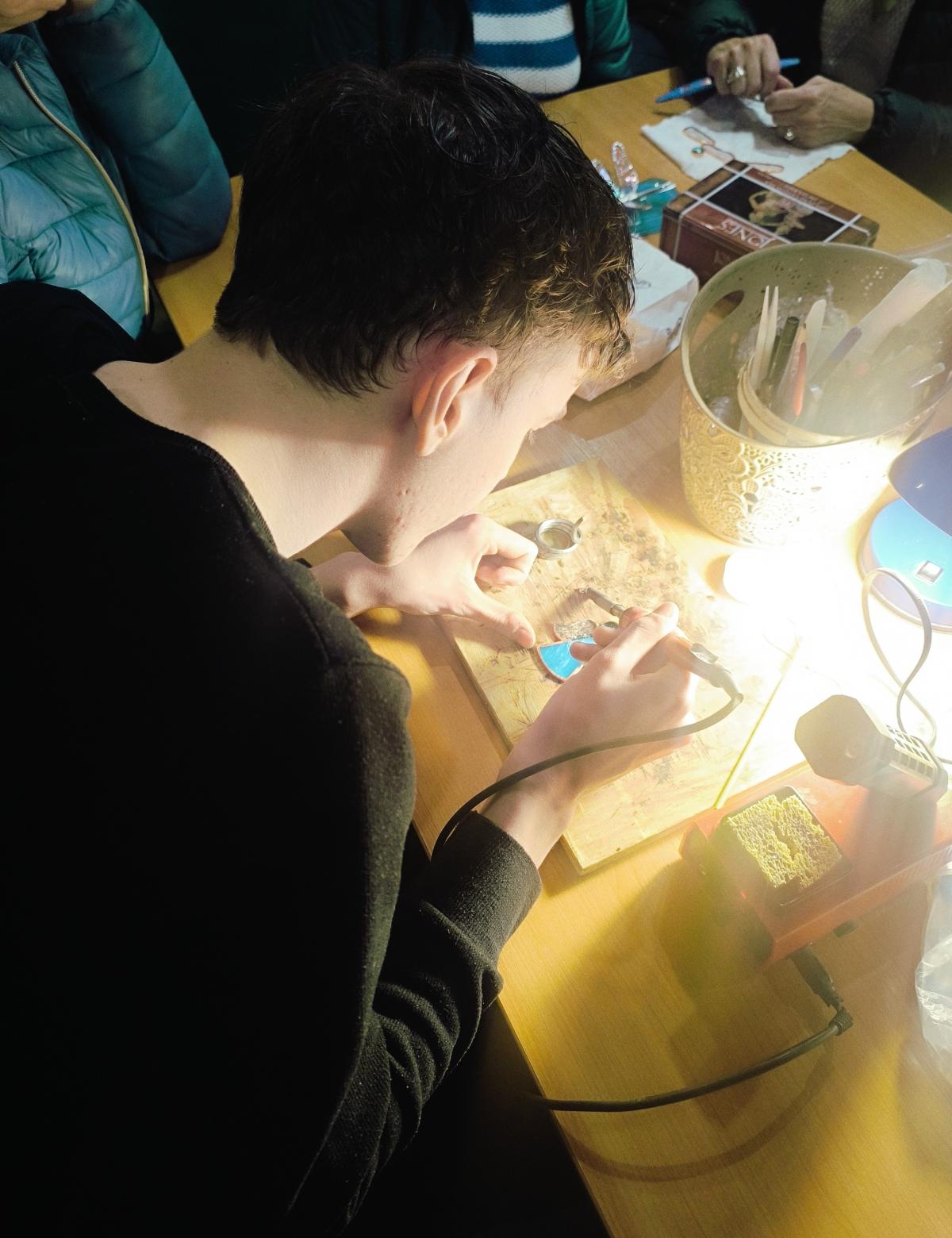 Wychowankowie Centrum Kształcenia i Wychowania OHP w Szczawnicy-Jabłonce wzięli udział w spotkaniu z uczestnikami Pienińskiego Uniwersytetu Trzeciego Wieku. Spotkanie to było kontynuacją cyklu zajęć, które rozpoczęły się już wcześniej – tym razem przyszedł czas na kolejną fazę pracy – lutowanie, które wymagało od uczestników zarówno umiejętności manualnych, jak i cierpliwości. Choć sama technika lutowania może wydawać się skomplikowana to dzięki cierpliwości i wskazówkom prowadzących, uczestnicy szybko opanowali podstawy.