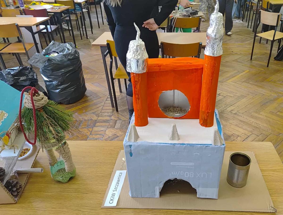 Wydarzenie miało na celu promowanie kreatywnego wykorzystania materiałów z odzysku oraz kształtowanie postaw proekologicznych wśród uczestników. W konkursie wziął udział Aleksander Grapa z CKiW OHP w Szczawnicy-Jabłonce, reprezentując swoją jednostkę z dużym zaangażowaniem. Uczestnik przygotował karmnik wykonany z różnorodnych surowców wtórnych, nadając im nowe życie poprzez twórcze podejście. Projekt Aleksandra inspirowany był architekturą średniowiecznego zamku, co nadało całej pracy wyjątkowy i wyróżniający się charakter. Karmnik zwracał uwagę nie tylko estetyką, lecz również dopracowaniem detali oraz funkcjonalnością przyjazną dla ptaków. Jury podkreśliło, że jego konstrukcja wyróżniała się zarówno pomysłowością, jak i harmonijnym połączeniem elementów dekoracyjnych z ekologicznymi założeniami konkursu.