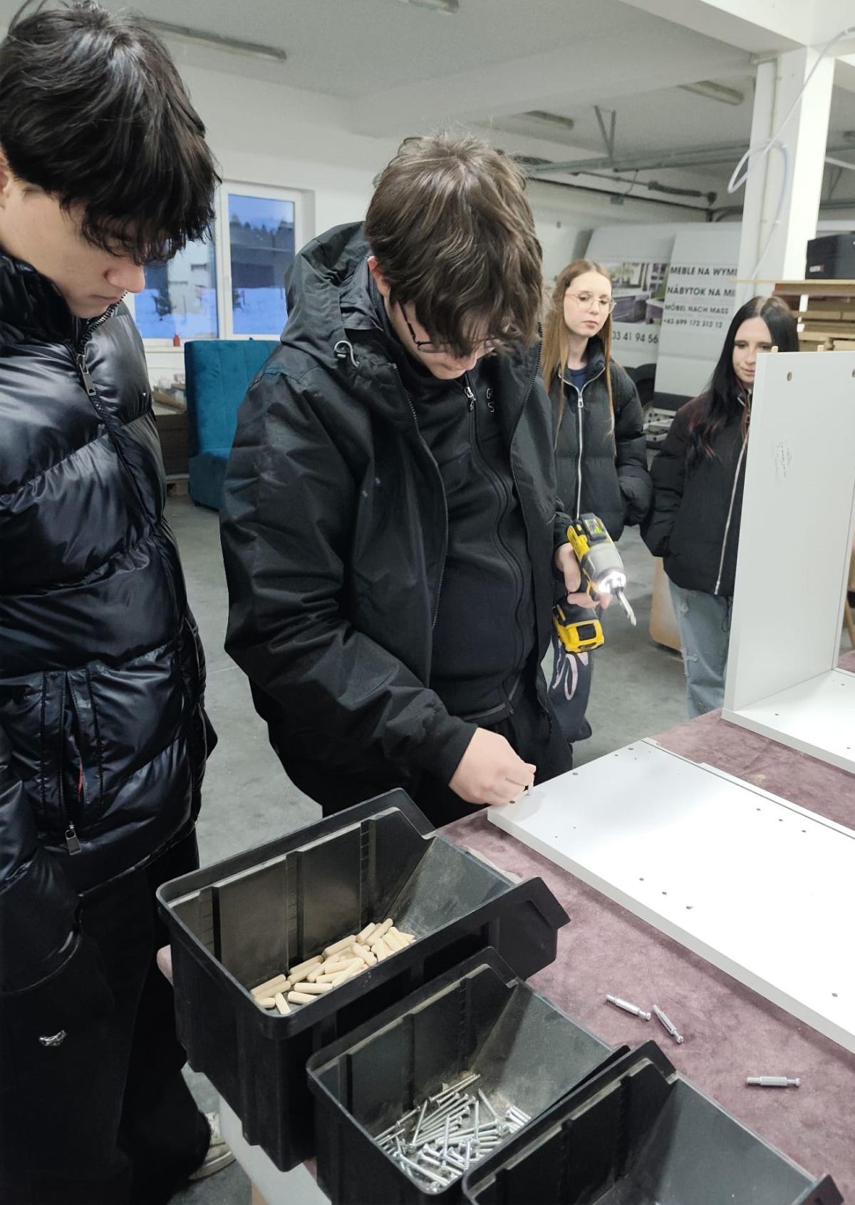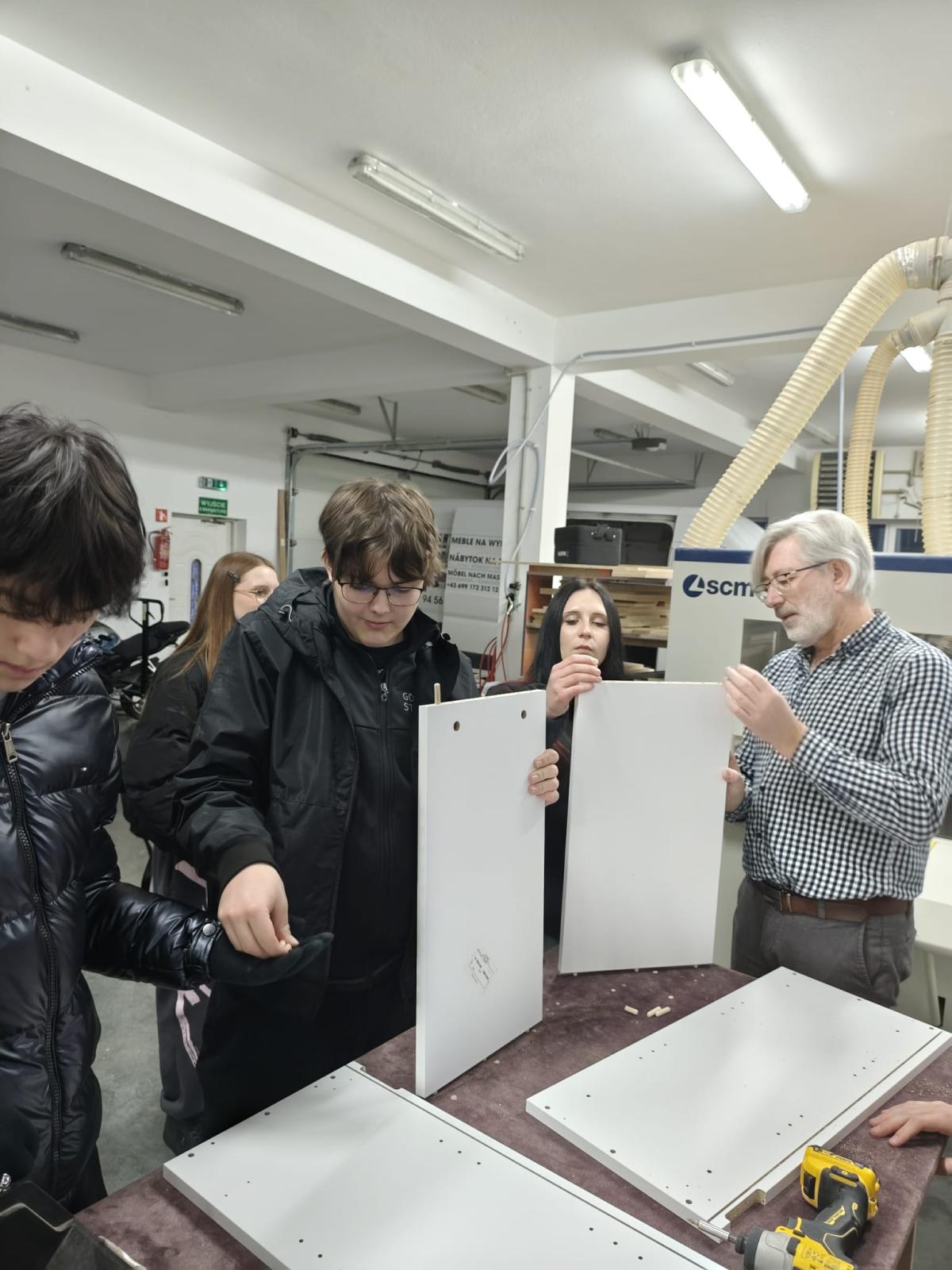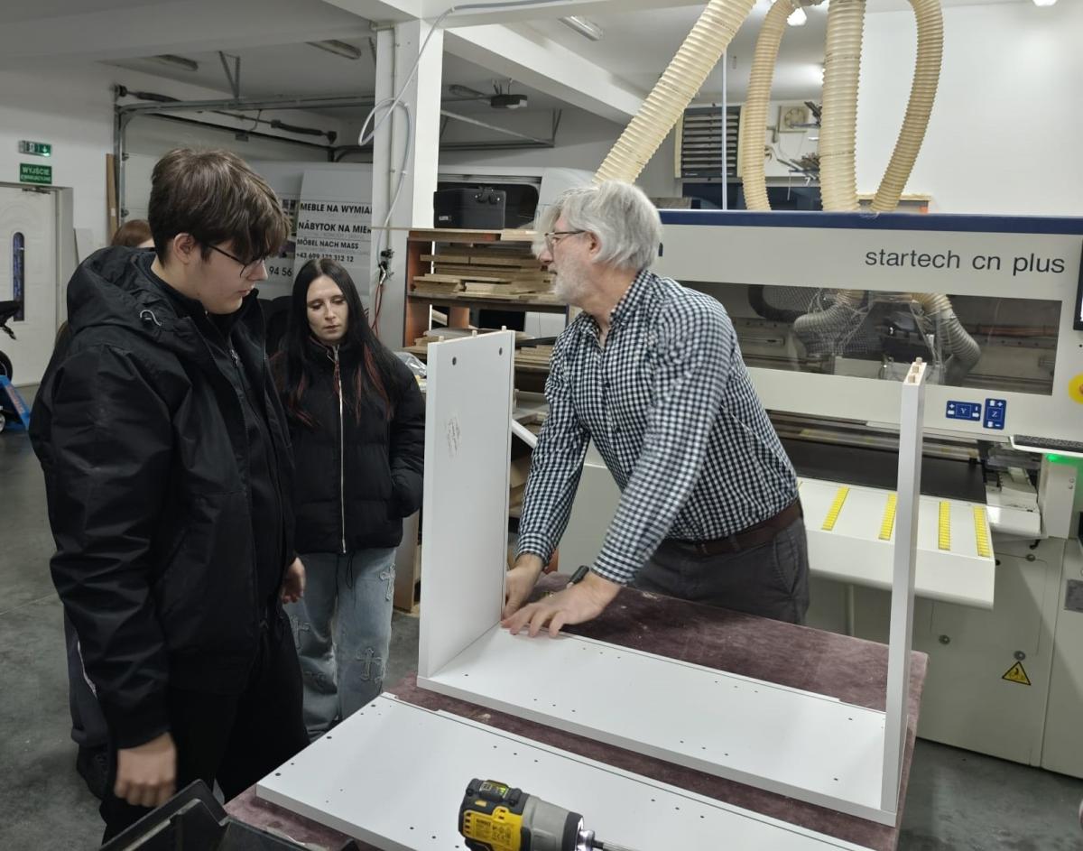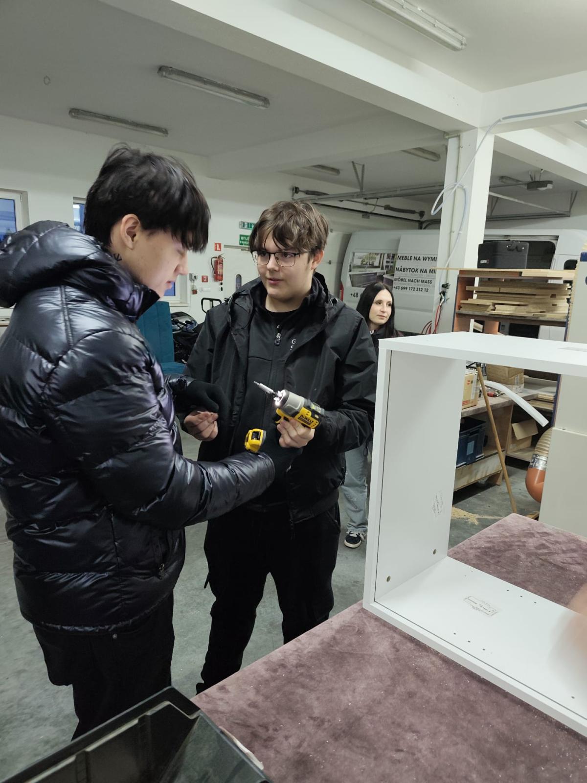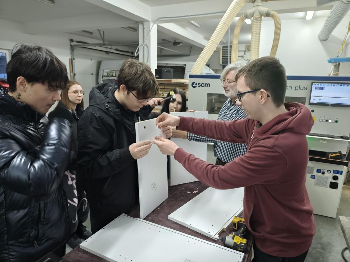 Zajęcia z arteterapii w zakładzie stolarskim ALMIRO okazały się wyjątkowym doświadczeniem dla młodzieży z Centrum Kształcenia i Wychowania OHP w Szczawnicy-Jabłonce. Podczas wizyty uczestnicy mieli okazję zobaczyć cały proces powstawania mebla – od projektu aż po jego finalny montaż. Instruktorzy ALMIRO przedstawili młodzieży etapy projektowania szafki oraz omówili zasady pracy w nowoczesnym warsztacie stolarskim. Duże zainteresowanie wzbudziły profesjonalne maszyny służące do cięcia i obróbki płyt, które zostały zaprezentowane w trakcie pokazów. Wychowankowie z zaangażowaniem obserwowali, jak powstają poszczególne elementy, a następnie mogli samodzielnie je dopasować i złożyć. Praca własnymi rękami była dla młodzieży nie tylko atrakcyjną formą nauki, lecz także sposobem na rozwijanie kreatywności i cierpliwości. Zajęcia miały charakter arteterapeutyczny, ponieważ pozwalały uczestnikom wyrazić siebie poprzez tworzenie i jednocześnie budowały poczucie sprawczości. Wspólne wykonywanie zadania sprzyjało integracji grupy i wzmacniało umiejętność współpracy. Uczestnicy podkreślali, że możliwość dotknięcia materiałów, użycia narzędzi oraz obserwowania pracy fachowców była dla nich bardzo inspirująca. Spotkanie w ALMIRO stało się wartościową lekcją łączącą praktyczne umiejętności z elementami rozwoju osobistego. Młodzież wróciła z zajęć z nowymi doświadczeniami, dumna z efektu wspólnej pracy i zmotywowana do dalszego rozwijania swoich pasji.