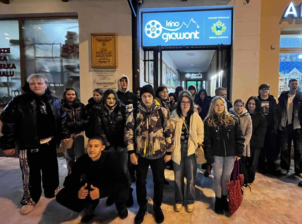 Młodzież z Centrum Kształcenia i Wychowania OHP w Szczawnicy-Jabłonce wybrała się do Zakopanego na seans filmu „Ministranci” w Kinie Giewont, który poruszał ważne tematy związane z dorastaniem i odpowiedzialnością. Po projekcji odbyła się krótka rozmowa, podczas której uczestnicy dzielili się swoimi refleksjami. Następnie grupa udała się na spacer po Krupówkach, gdzie panowała prawdziwa zimowa atmosfera. Ulice były pokryte grubą warstwą śniegu, a wokół zachwycały świąteczne ozdoby i iluminacje. Młodzież z entuzjazmem podziwiała udekorowane Zakopane, robiła zdjęcia i korzystała z uroków zimowego klimatu. Wyjazd sprzyjał integracji oraz budowaniu pozytywnych relacji w grupie internackiej. Uczestnicy wrócili pełni wrażeń i świątecznego nastroju.
