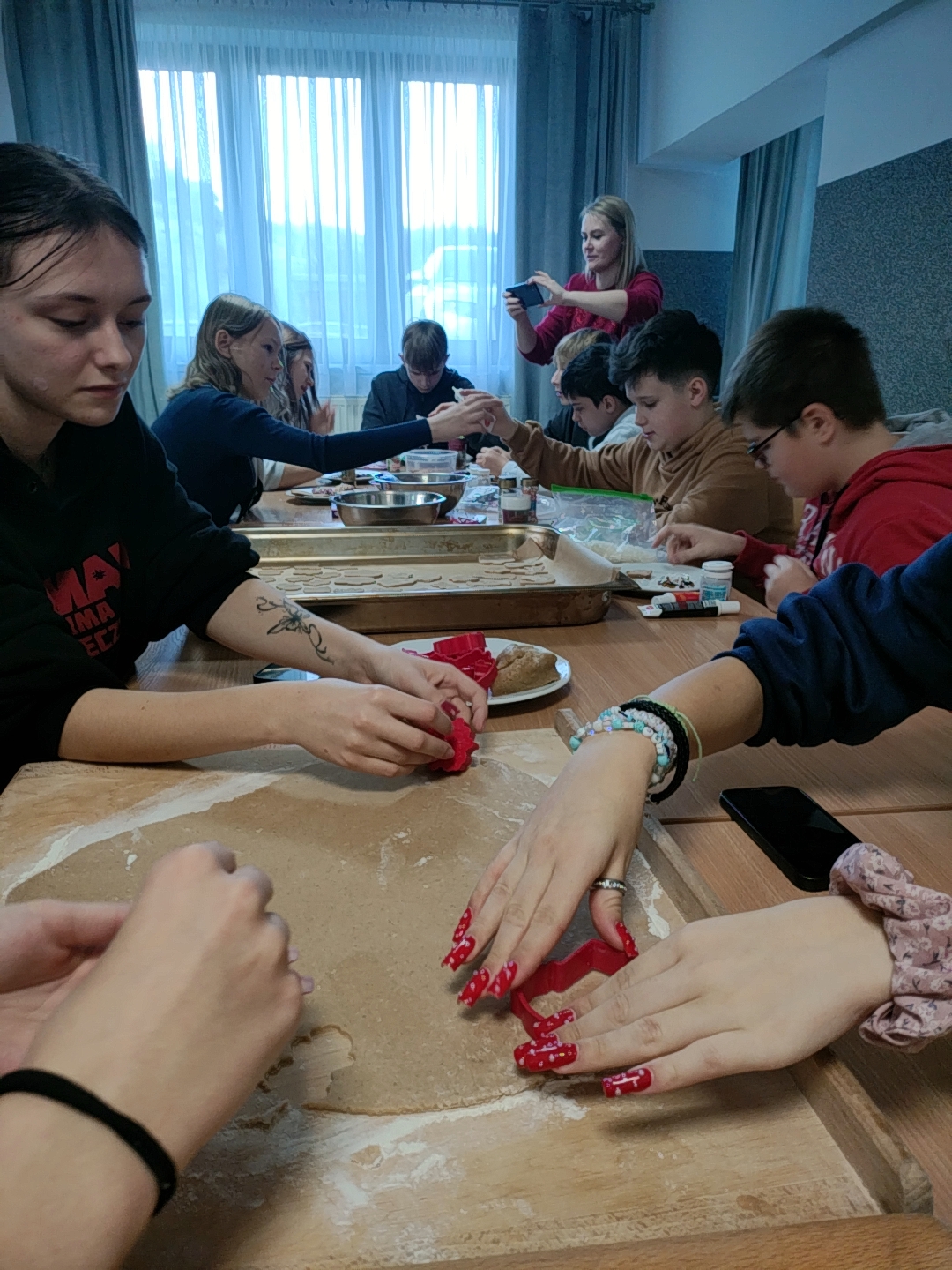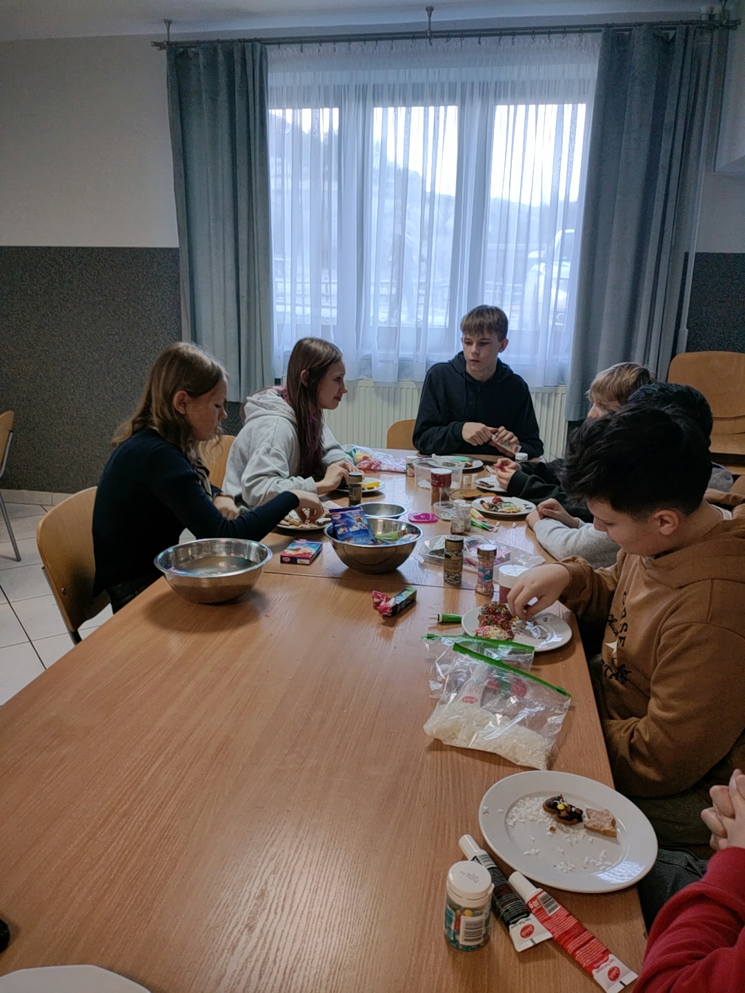 W przedświątecznej atmosferze młodzież z Centrum Kształcenia i Wychowania OHP w Szczawnicy-Jabłonce wraz z uczniami Szkoły Podstawowej w Szlachtowej spotkała się na wspólnym pieczeniu pierniczków. Wydarzenie miało nie tylko charakter kulinarny , lecz przede wszystkim integracyjny – starsi wychowankowie pomagali młodszym w wyrabianiu ciasta, wykrawaniu świątecznych kształtów oraz dekorowaniu wypieków kolorowym lukrem.