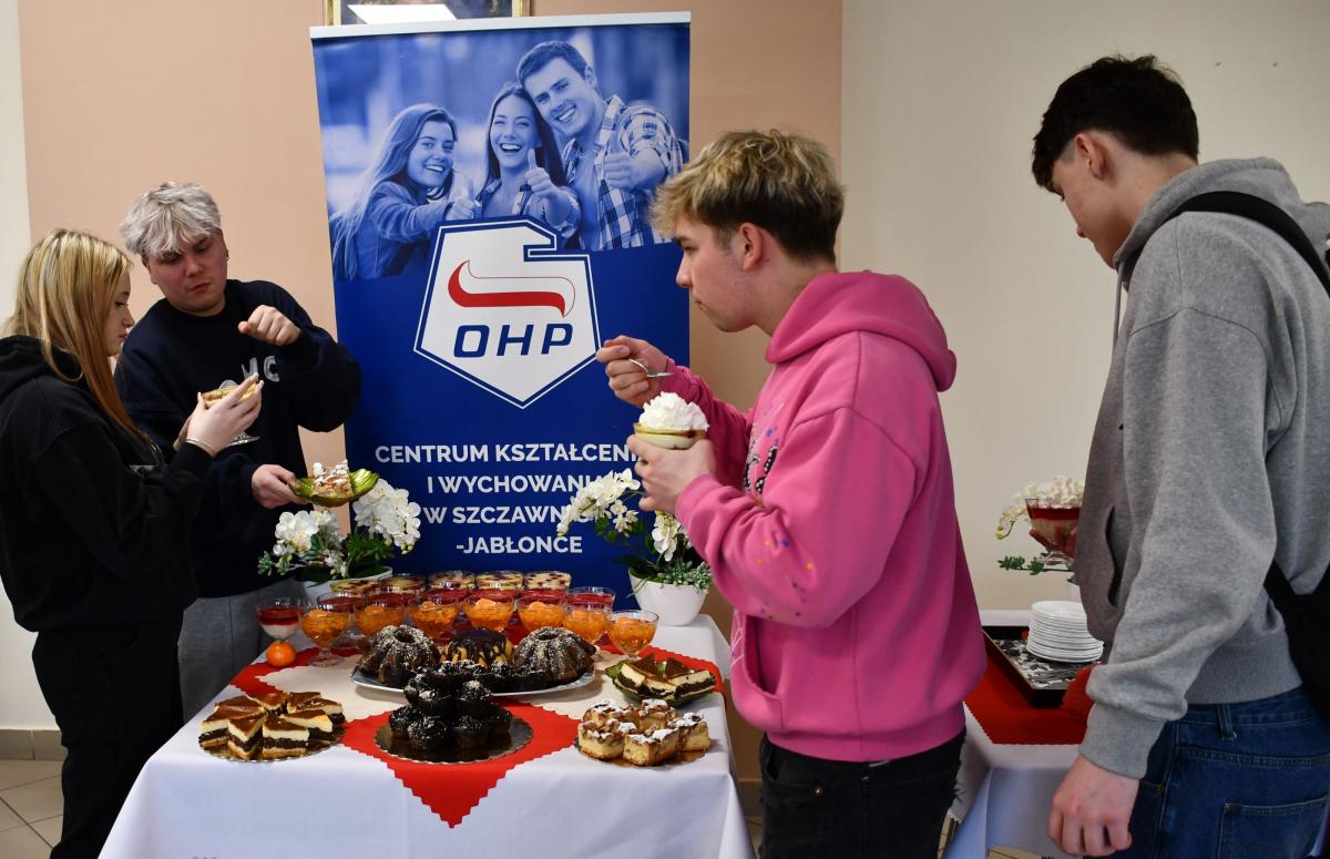 Z okazji Dnia Słodkości młodzież z CKiW OHP w Szczawnicy- Jabłonce kształcąca się w zawodzie kucharz przygotowała wyjątkowy słodki stół, który zachwycał nie tylko smakiem, ale i wyglądem. Na stołach pojawiły się domowe ciasta: mako - sernik, ciasto ucierane z jabłkami, babki – czekoladowa i cytrynowa, kolorowe desery owocowe oraz mleczno-czekoladowe w pucharkach, galaretki z owocami, babeczki i mufinki, tarty oraz słodkości inspirowane klasyczną i nowoczesną cukiernią. Każdy wypiek był efektem zaangażowania, kreatywności i zdobywanych umiejętności kulinarnych pod skrzydłami pań instruktorek praktycznej nauki zawodu.