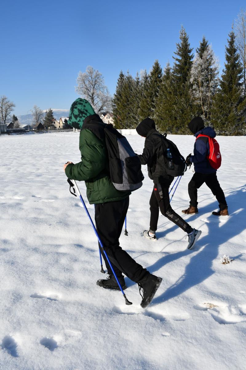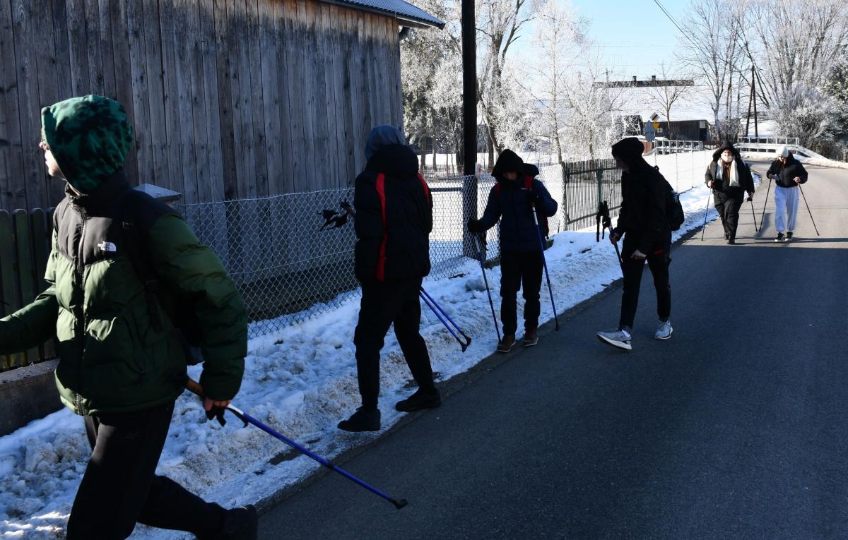 Młodzież pokonała wyznaczoną trasę w umiarkowanym tempie, dostosowanym do warunków pogodowych. Świeże, mroźne powietrze sprzyjało hartowaniu organizmu i poprawie kondycji. Marsz z kijami pozwolił na zaangażowanie wielu partii mięśni oraz wzmocnienie wytrzymałości. Zimowa aura dodała wydarzeniu wyjątkowego charakteru, a otaczająca przyroda stworzyła doskonałe warunki do aktywnego wypoczynku. Spacer był elementem programu ferii, który łączy edukację prozdrowotną z praktycznym działaniem. Uczestnicy zakończyli marsz z poczuciem dobrze wykorzystanego czasu i satysfakcją z podjętego wysiłku.