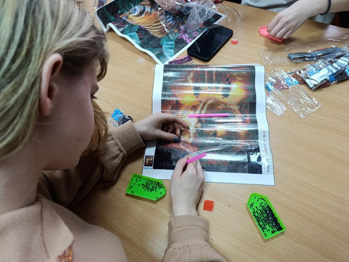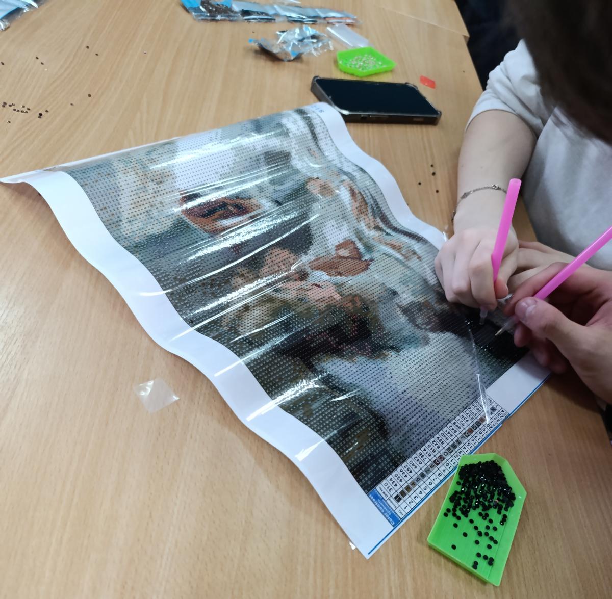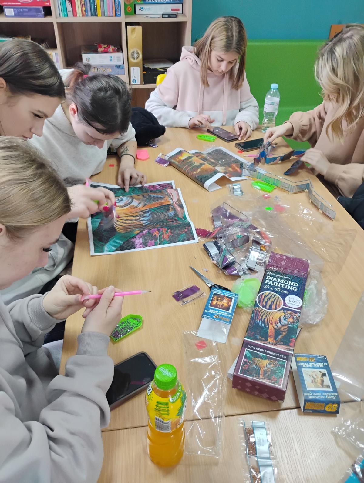 Podczas warsztatów uczestnicy poznali technikę tworzenia obrazów 🖼️ z kolorowych diamencików 💠, ucząc się precyzji 🎯, cierpliwości ⏳ i koncentracji 🧠. Haft diamentowy okazał się nie tylko formą twórczej ekspresji 🎨, ale również sposobem na relaks 😌 i wyciszenie 🌿. Powstałe prace zachwycały bogactwem barw 🌈 i starannością wykonania ✨.